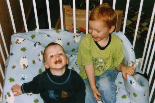 •  Malte mit Marieke beim gemeinsamen Toben im Laufstall