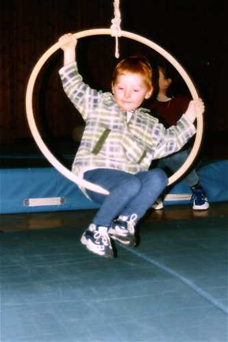 •  Malte bei einer seiner Lieblingsbeschäftigung, dem Turnen